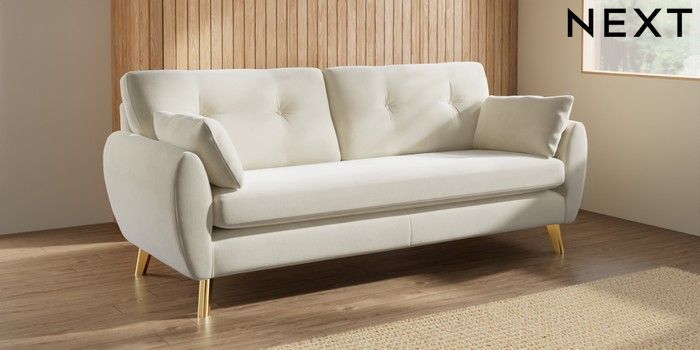 7.3.1 Buy Wilson Buttoned Back 3 Seater Sofa Luxe Chenille Oyster Metal Tapered - Gold from the Seasons online shop Click here to use our website with more accessibility support, for example screen readers