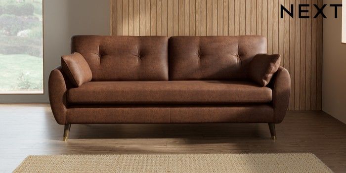 7.3.1 Buy Wilson Buttoned Back 3 Seater Sofa Monza Faux Leather Easy Clean Chestnut Brown Low Retro Tapered Metal Cap - Mid from the Seasons online shop