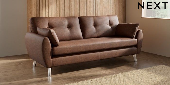 7.3.1 Buy Wilson Buttoned Back 3 Seater Sofa Monza Faux Leather Easy Clean Chestnut Brown Metal Tapered - Chrome from the Seasons online shop