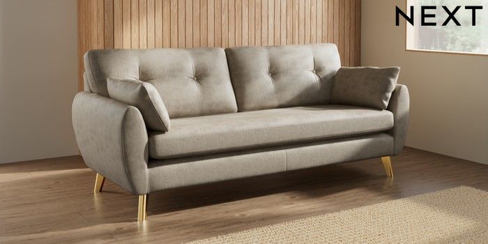 7.3.1 Buy Wilson Buttoned Back 3 Seater Sofa Monza Faux Leather Easy Clean Mink Brown Metal Tapered - Gold from the Seasons online shop