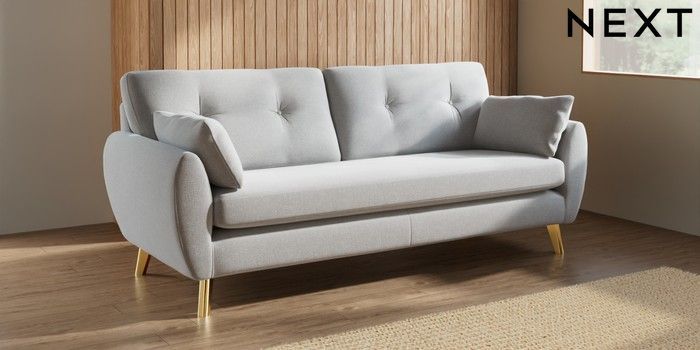 7.3.1 Buy Wilson Buttoned Back 3 Seater Sofa Natural Mix Light Grey Metal Tapered - Gold from the Seasons online shop Click here to use our website with more accessibility support, for example screen readers