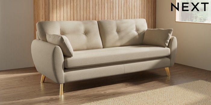 7.3.1 Buy Wilson Buttoned Back 3 Seater Sofa Natural Mix Light Natural Metal Tapered - Gold from the Seasons online shop Click here to use our website with more accessibility support, for example screen readers