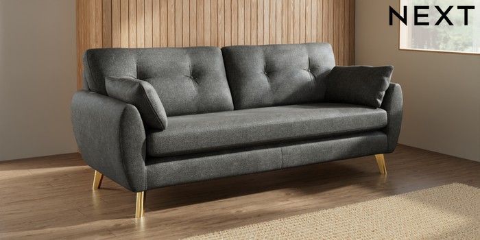 7.3.1 Buy Wilson Buttoned Back 3 Seater Sofa Plush Chenille Dark Grey Metal Tapered - Gold from the Seasons online shop Click here to use our website with more accessibility support, for example screen readers