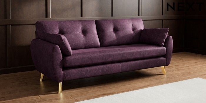 7.3.1 Buy Wilson Buttoned Back 3 Seater Sofa Plush Chenille Dark Plum Purple Metal Tapered - Gold from the Seasons online shop Click here to use our website with more accessibility support, for example screen readers