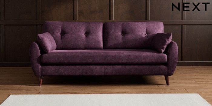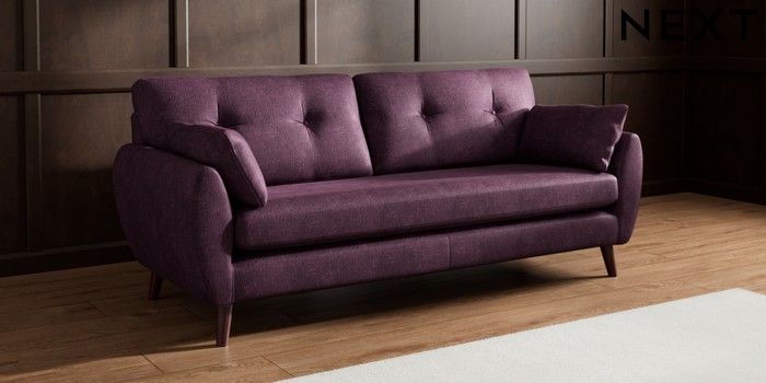 7.3.1 Buy Wilson Buttoned Back 3 Seater Sofa Plush Chenille Dark Plum Purple Retro Tapered - Dark Brown from the Seasons online shop Click here to use our website with more accessibility support, for example screen readers