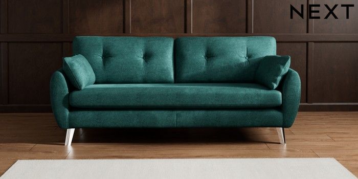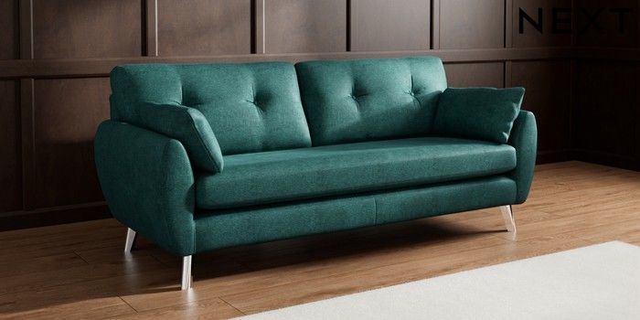 7.3.1 Buy Wilson Buttoned Back 3 Seater Sofa Plush Chenille Dark Teal Green Metal Tapered - Chrome from the Seasons online shop Click here to use our website with more accessibility support, for example screen readers