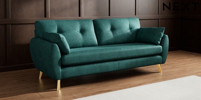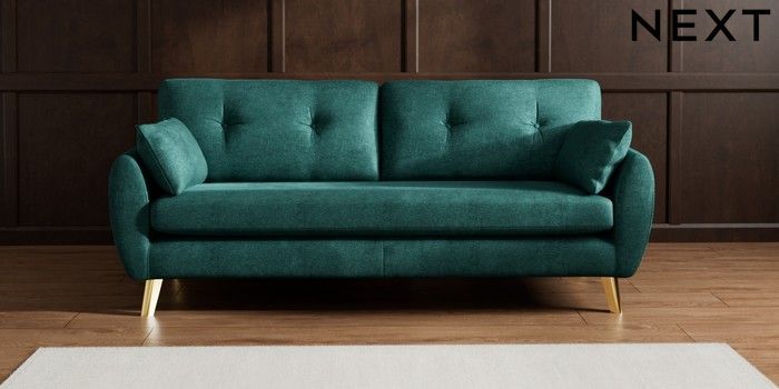 7.3.1 Buy Wilson Buttoned Back 3 Seater Sofa Plush Chenille Dark Teal Green Metal Tapered - Gold from the Seasons online shop Click here to use our website with more accessibility support, for example screen readers