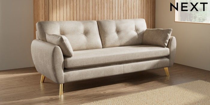 7.3.1 Buy Wilson Buttoned Back 3 Seater Sofa Plush Chenille Light Natural Metal Tapered - Gold from the Seasons online shop Click here to use our website with more accessibility support, for example screen readers