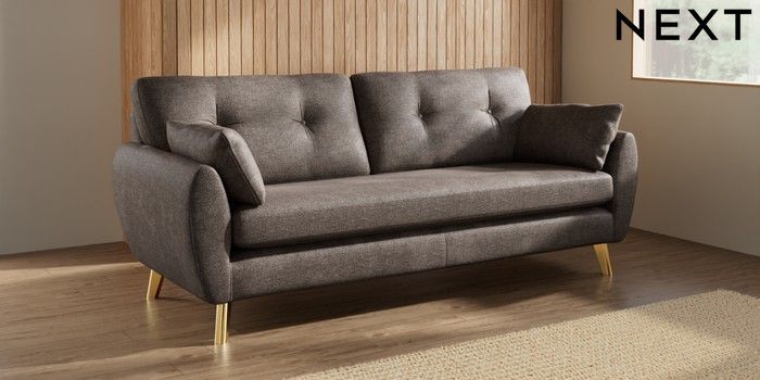 7.3.1 Buy Wilson Buttoned Back 3 Seater Sofa Plush Chenille Mink Brown Metal Tapered - Gold from the Seasons online shop Click here to use our website with more accessibility support, for example screen readers
