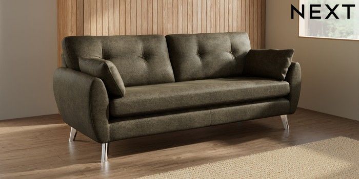 7.3.1 Buy Wilson Buttoned Back 3 Seater Sofa Plush Chenille Moss Green Metal Tapered - Chrome from the Seasons online shop Click here to use our website with more accessibility support, for example screen readers