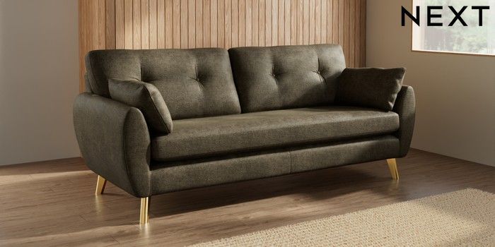 7.3.1 Buy Wilson Buttoned Back 3 Seater Sofa Plush Chenille Moss Green Metal Tapered - Gold from the Seasons online shop Click here to use our website with more accessibility support, for example screen readers