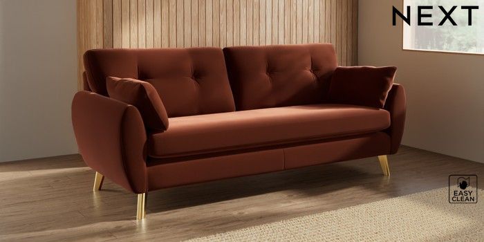 7.3.1 Buy Wilson Buttoned Back 3 Seater Sofa Plush Velvet Easy Clean Ginger Orange Metal Tapered - Gold from the Seasons online shop Click here to use our website with more accessibility support, for example screen readers