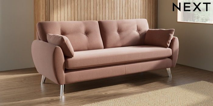 7.3.1 Buy Wilson Buttoned Back 3 Seater Sofa Relaxed Linen Look Light Rust Brown Metal Tapered - Chrome from the Seasons online shop Click here to use our website with more accessibility support, for example screen readers