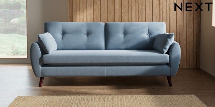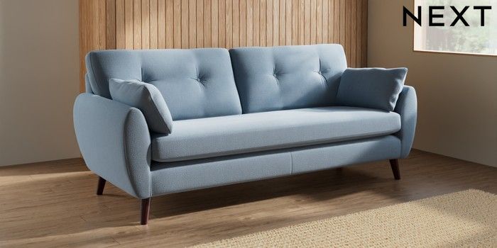 7.3.1 Buy Wilson Buttoned Back 3 Seater Sofa Relaxed Linen Look Mid Blue Retro Tapered - Dark Brown from the Seasons online shop Click here to use our website with more accessibility support, for example screen readers