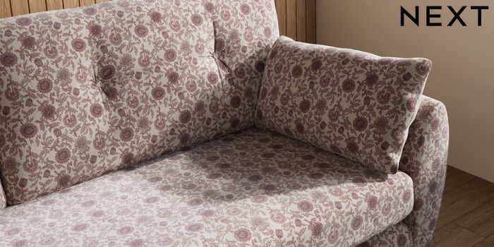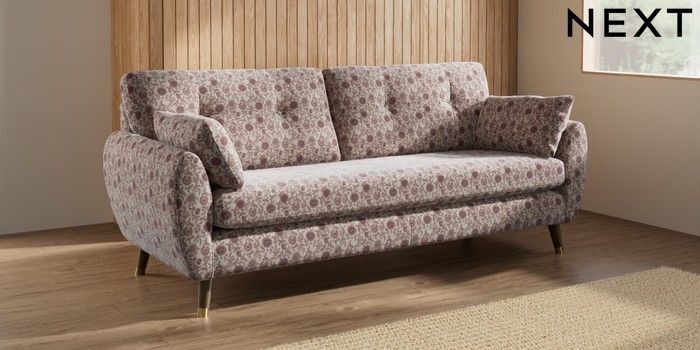 7.3.1 Buy Wilson Buttoned Back 3 Seater Sofa Relaxed Linen Look Print Woodblock Floral Print Pink Low Retro Tapered Metal Cap - Mid from the Seasons online shop