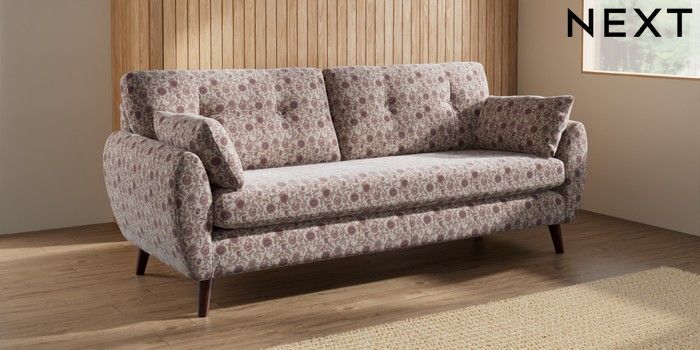 7.3.1 Buy Wilson Buttoned Back 3 Seater Sofa Relaxed Linen Look Print Woodblock Floral Print Pink Retro Tapered - Dark Brown from the Seasons online shop