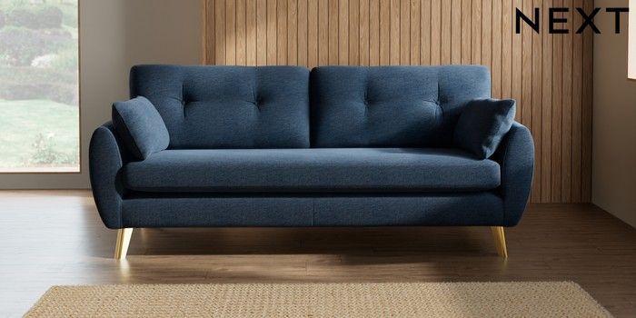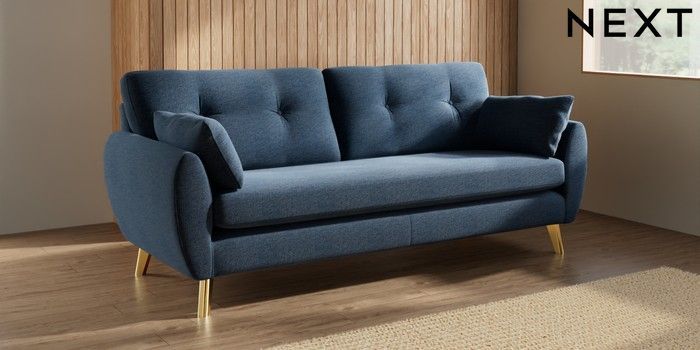 7.3.1 Buy Wilson Buttoned Back 3 Seater Sofa Ripple Chenille Dark Blue Metal Tapered - Gold from the Seasons online shop Click here to use our website with more accessibility support, for example screen readers