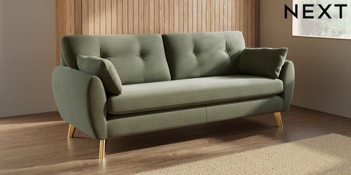 7.3.1 Buy Wilson Buttoned Back 3 Seater Sofa Ripple Chenille Mid Moss Green Metal Tapered - Gold from the Seasons online shop Click here to use our website with more accessibility support, for example screen readers
