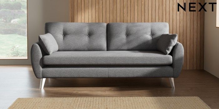 7.2.10 Buy Wilson Buttoned Back 3 Seater Sofa Studio Chenille Mid Grey Metal Tapered - Chrome from the Seasons online shop Click here to use our website with more accessibility support, for example screen readers