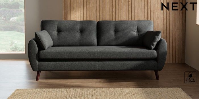 7.3.1 Buy Wilson Buttoned Back 3 Seater Sofa Tweedy Blend Easy Clean Charcoal Grey Retro Tapered - Dark Brown from the Seasons online shop Click here to use our website with more accessibility support, for example screen readers