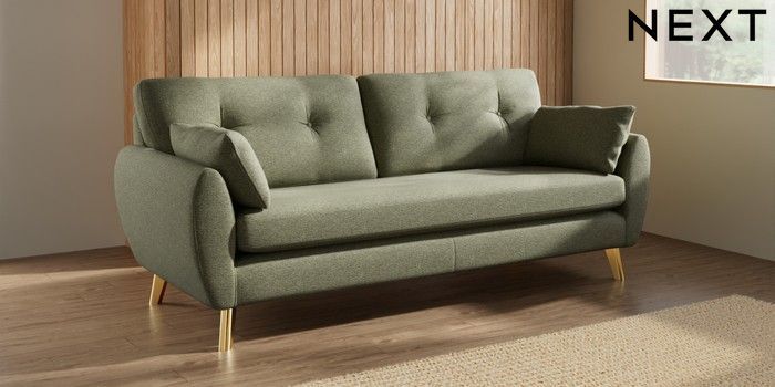 7.3.1 Buy Wilson Buttoned Back 3 Seater Sofa Tweedy Chenille Mid Moss Green Metal Tapered - Gold from the Seasons online shop Click here to use our website with more accessibility support, for example screen readers