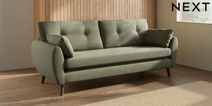 7.3.1 Buy Wilson Buttoned Back 3 Seater Sofa Tweedy Chenille Mid Moss Green Retro Tapered - Mid from the Seasons online shop Click here to use our website with more accessibility support, for example screen readers
