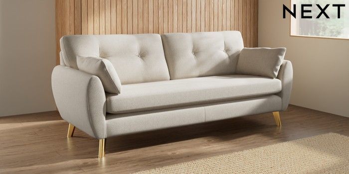 7.3.1 Buy Wilson Buttoned Back 3 Seater Sofa Tweedy Chenille Oyster Metal Tapered - Gold from the Seasons online shop Click here to use our website with more accessibility support, for example screen readers