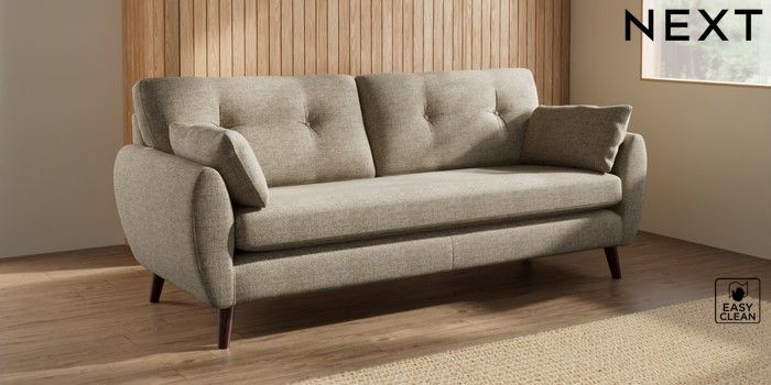 7.3.1 Buy Wilson Buttoned Back 3 Seater Sofa Woven Chenille Easy Clean Mid Natural Retro Tapered - Dark Brown from the Seasons online shop Click here to use our website with more accessibility support, for example screen readers