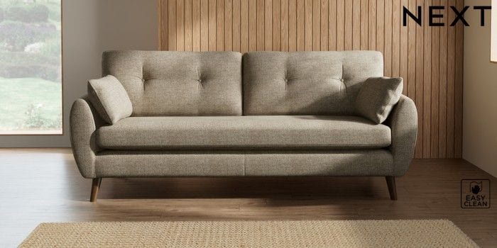 7.3.1 Buy Wilson Buttoned Back 3 Seater Sofa Woven Chenille Easy Clean Mid Natural Retro Tapered - Mid from the Seasons online shop Click here to use our website with more accessibility support, for example screen readers