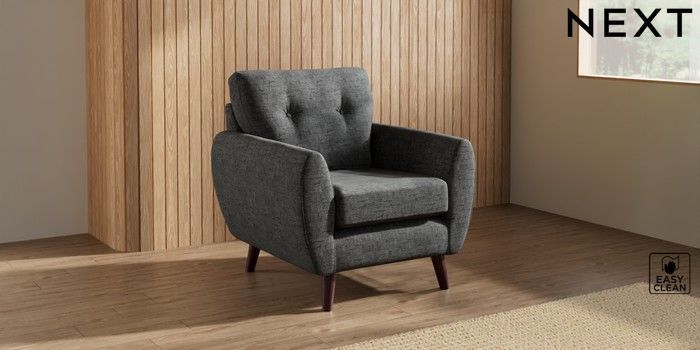 7.3.1 Buy Wilson Buttoned Back Armchair Boucle Weave Easy Clean Charcoal Grey Retro Tapered - Dark Brown from the Seasons online shop Click here to use our website with more accessibility support, for example screen readers