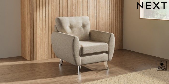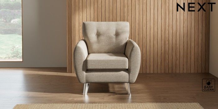 7.3.1 Buy Wilson Buttoned Back Armchair Boucle Weave Easy Clean Dark Natural Metal Tapered - Chrome from the Seasons online shop Click here to use our website with more accessibility support, for example screen readers