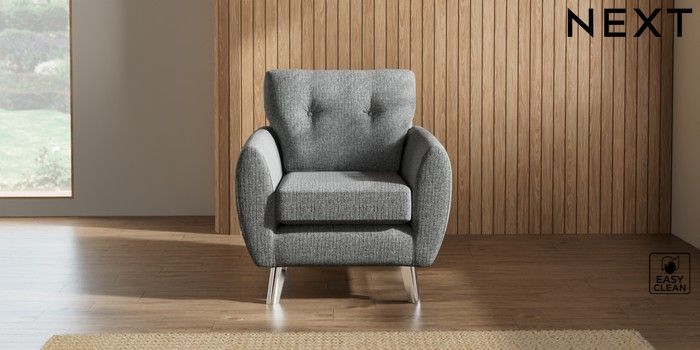 7.3.1 Buy Wilson Buttoned Back Armchair Chunky Boucle Easy Clean Mid Grey Metal Tapered - Chrome from the Seasons online shop Click here to use our website with more accessibility support, for example screen readers