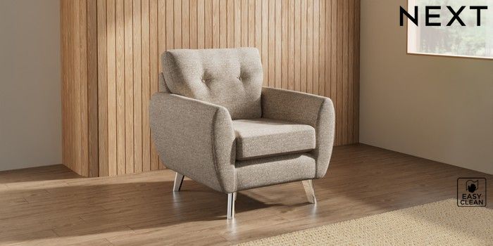7.3.1 Buy Wilson Buttoned Back Armchair Chunky Boucle Easy Clean Mid Natural Metal Tapered - Chrome from the Seasons online shop Click here to use our website with more accessibility support, for example screen readers