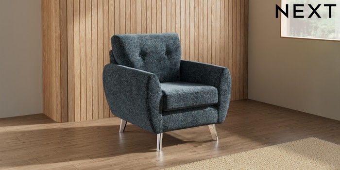 7.3.1 Buy Wilson Buttoned Back Armchair Chunky Chenille Dark Navy Blue Metal Tapered - Chrome from the Seasons online shop Click here to use our website with more accessibility support, for example screen readers