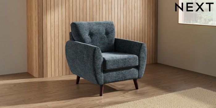 7.3.1 Buy Wilson Buttoned Back Armchair Chunky Chenille Dark Navy Blue Retro Tapered - Dark Brown from the Seasons online shop Click here to use our website with more accessibility support, for example screen readers