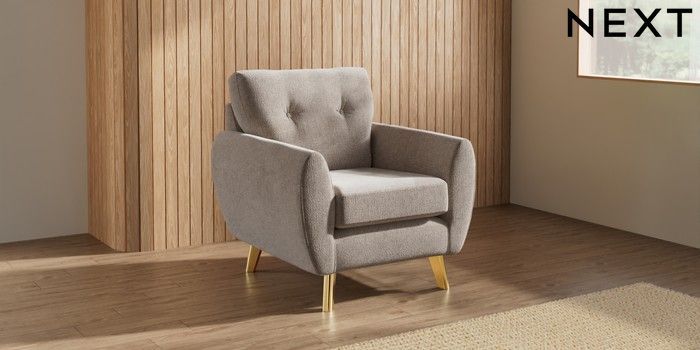 7.3.1 Buy Wilson Buttoned Back Armchair Chunky Chenille Light Dove Metal Tapered - Gold from the Seasons online shop Click here to use our website with more accessibility support, for example screen readers