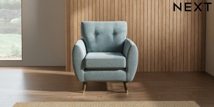 7.3.1 Buy Wilson Buttoned Back Armchair Chunky Marl Mid Blue Low Retro Tapered Metal Cap - Mid from the Seasons online shop Click here to use our website with more accessibility support, for example screen readers