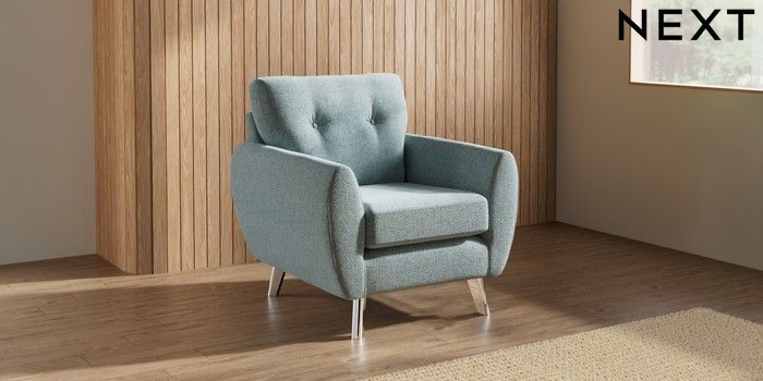 7.3.1 Buy Wilson Buttoned Back Armchair Chunky Marl Mid Blue Metal Tapered - Chrome from the Seasons online shop Click here to use our website with more accessibility support, for example screen readers