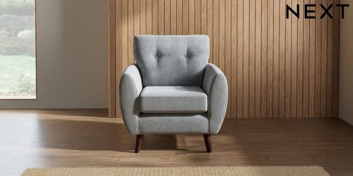 7.3.1 Buy Wilson Buttoned Back Armchair Chunky Marl Mid Grey Retro Tapered - Dark Brown from the Seasons online shop Click here to use our website with more accessibility support, for example screen readers