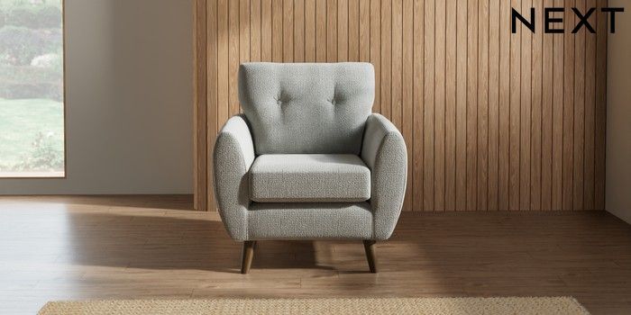 7.2.10 Buy Wilson Buttoned Back Armchair Chunky Texture Dove Retro Tapered - Mid from the Seasons online shop Click here to use our website with more accessibility support, for example screen readers