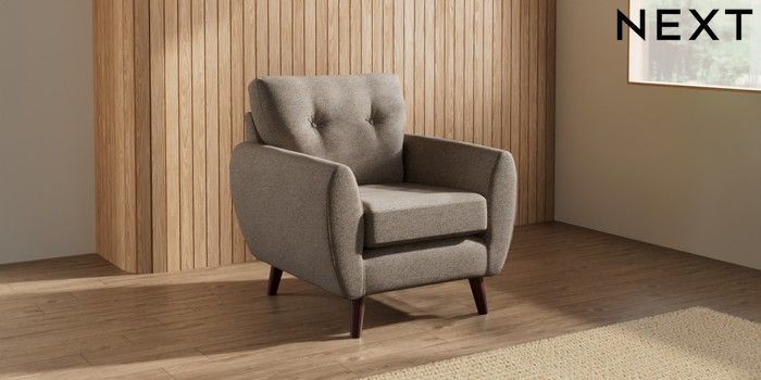 7.3.1 Buy Wilson Buttoned Back Armchair Chunky Weave Dark Natural Retro Tapered - Dark Brown from the Seasons online shop Click here to use our website with more accessibility support, for example screen readers