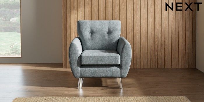 7.3.1 Buy Wilson Buttoned Back Armchair Chunky Weave Mid Blue Metal Tapered - Chrome from the Seasons online shop Click here to use our website with more accessibility support, for example screen readers