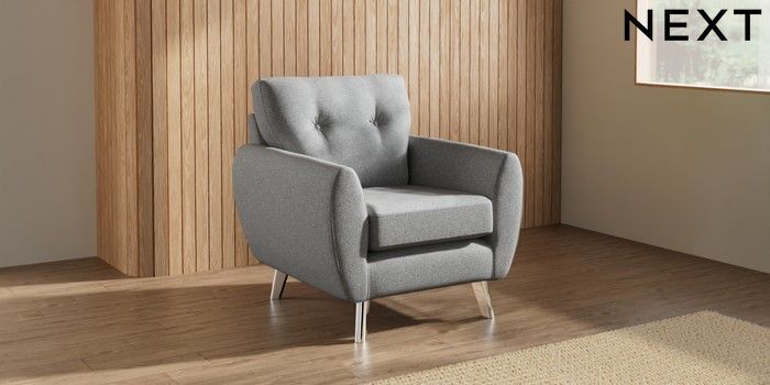 7.3.1 Buy Wilson Buttoned Back Armchair Chunky Weave Mid Grey Metal Tapered - Chrome from the Seasons online shop Click here to use our website with more accessibility support, for example screen readers