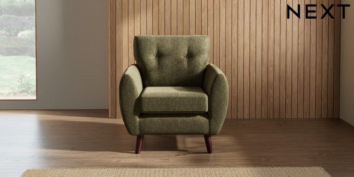 7.3.1 Buy Wilson Buttoned Back Armchair Cotswold Chenille Dark Green Retro Tapered - Dark Brown from the Seasons online shop Click here to use our website with more accessibility support, for example screen readers