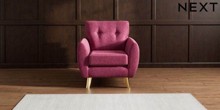 7.3.1 Buy Wilson Buttoned Back Armchair Cotswold Chenille Dark Raspberry Pink Metal Tapered - Gold from the Seasons online shop Click here to use our website with more accessibility support, for example screen readers