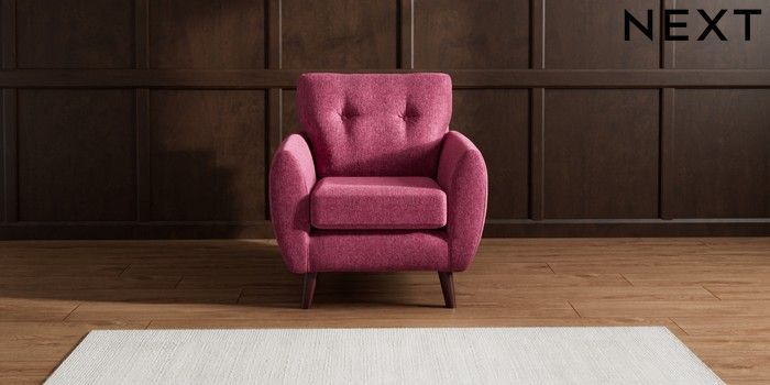 7.3.1 Buy Wilson Buttoned Back Armchair Cotswold Chenille Dark Raspberry Pink Retro Tapered - Dark Brown from the Seasons online shop Click here to use our website with more accessibility support, for example screen readers
