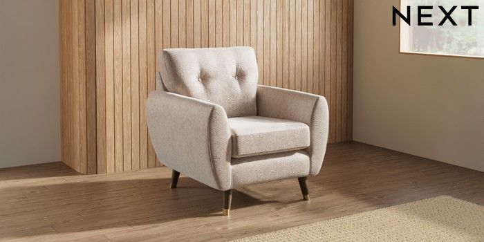 7.3.1 Buy Wilson Buttoned Back Armchair Cotswold Chenille Light Natural Low Retro Tapered Metal Cap - Mid from the Seasons online shop Click here to use our website with more accessibility support, for example screen readers