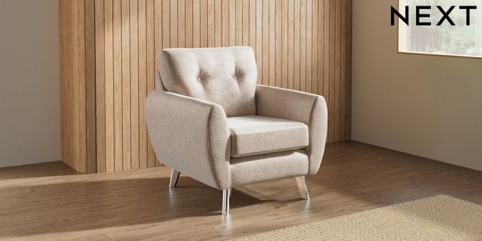 7.3.1 Buy Wilson Buttoned Back Armchair Cotswold Chenille Light Natural Metal Tapered - Chrome from the Seasons online shop Click here to use our website with more accessibility support, for example screen readers