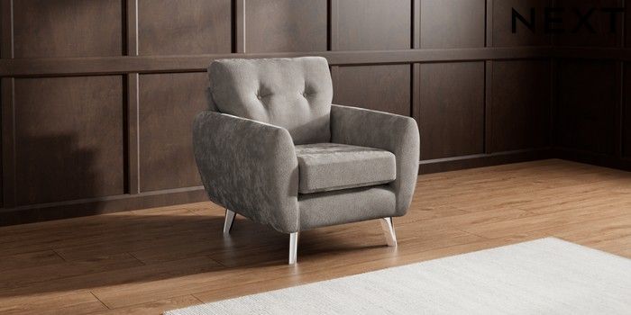 7.3.1 Buy Wilson Buttoned Back Armchair Distressed Velour French Grey Metal Tapered - Chrome from the Seasons online shop Click here to use our website with more accessibility support, for example screen readers