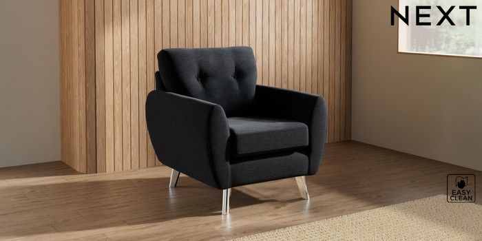 7.3.1 Buy Wilson Buttoned Back Armchair Fine Chenille Easy Clean Black Metal Tapered - Chrome from the Seasons online shop Click here to use our website with more accessibility support, for example screen readers